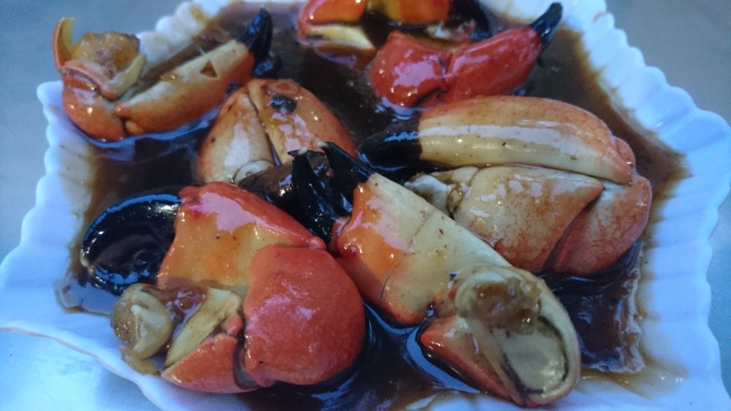 The sauce mixes with stone crab, made by tamarind and a little sugar, so it is a bit sour and sweet to cover the claws. Before I used the pliers to break the claws, I sponged the crab sauce, sour and sweet, so great!!! Yummy yummy.