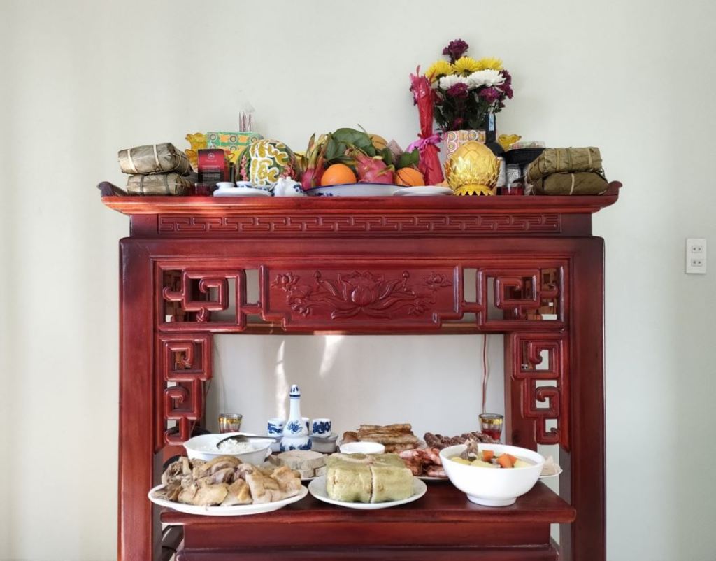 Normally we cook a meal which is called “goodbye old year and say hell new year” one to invite the old ancient go back and celebrate Tet with us in the afternoon at the end of year.