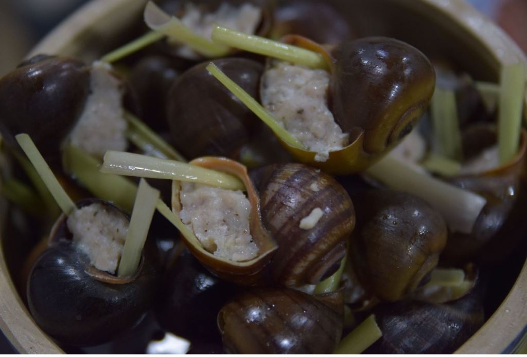 The second one is snails stuffed with pork which is famous in Dalat, which is made from purred snail and pork then they re-put in snail cover and steam. I don’t know why the taste of this one in Dalat is different to others. It is very special that in Dalat you cook by yourself unless the beginning steps (pure, mix..)