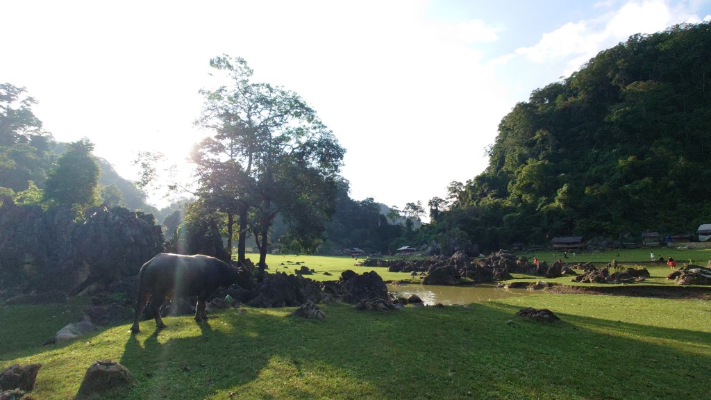 Hang Tau is located in a valley nearly 20 km from Moc Chau center. Here there is a green lawn and wooden houses of the H’Mong people forming isolated clusters, surrounded by mountains and forests. The most special of Hang Tau is no internet, no wifi, no phone signal, no electricity and just having the sounds of castles and laughing of kids which suits for a person wanting to hideaway the hectic life. Because of that, this place is likened to a primitive village.